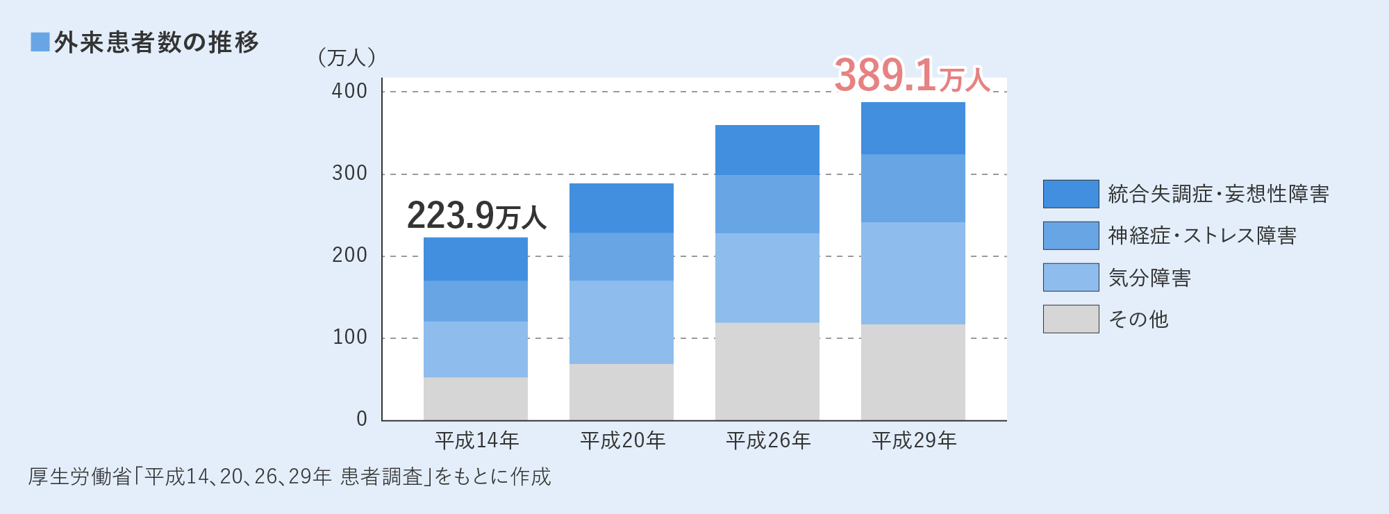 メンタル疾患については、外来での治療が年々増加しており、外来治療による休職にも備えられます。