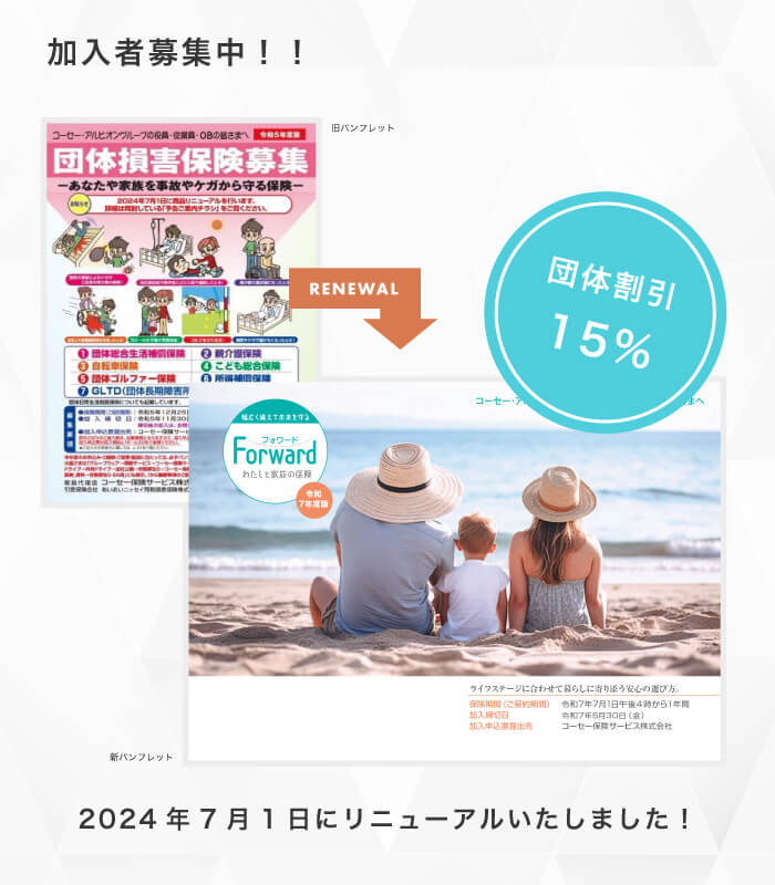 ・パッケージ名を「団体損害保険」から「Forward~わたしと家族の保険~」に変更いたしました。